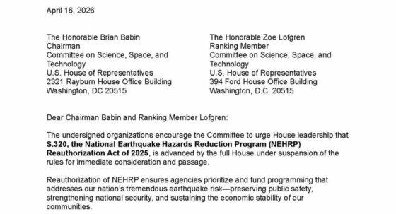 Strengthening Earthquake Resilience: IIBEC Joins Call for Swift NEHRP Reauthorization April 17, 2026 IIBEC was pleased to join 14 other organizations in an April 16, 2026, letter calling on US House of Representatives leadership to move quickly to advance S. 320, the National Earthquake Hazards Reduction Program (NEHRP) Reauthorization Act of 2025. Renewing NEHRP is vital to enhancing seismic resilience, safeguarding public safety, and supporting communities nationwide that face meaningful earthquake risk. Government Relations