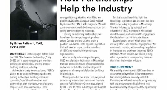 From the CEO: How Partnerships Help the Industry April 17, 2026 You've read it in these pages before (From the CEO: “The Power of Partnerships,” July 2022), but it bears repeating: partnerships continue to benefit IIBEC and the broader building enclosure industry.
