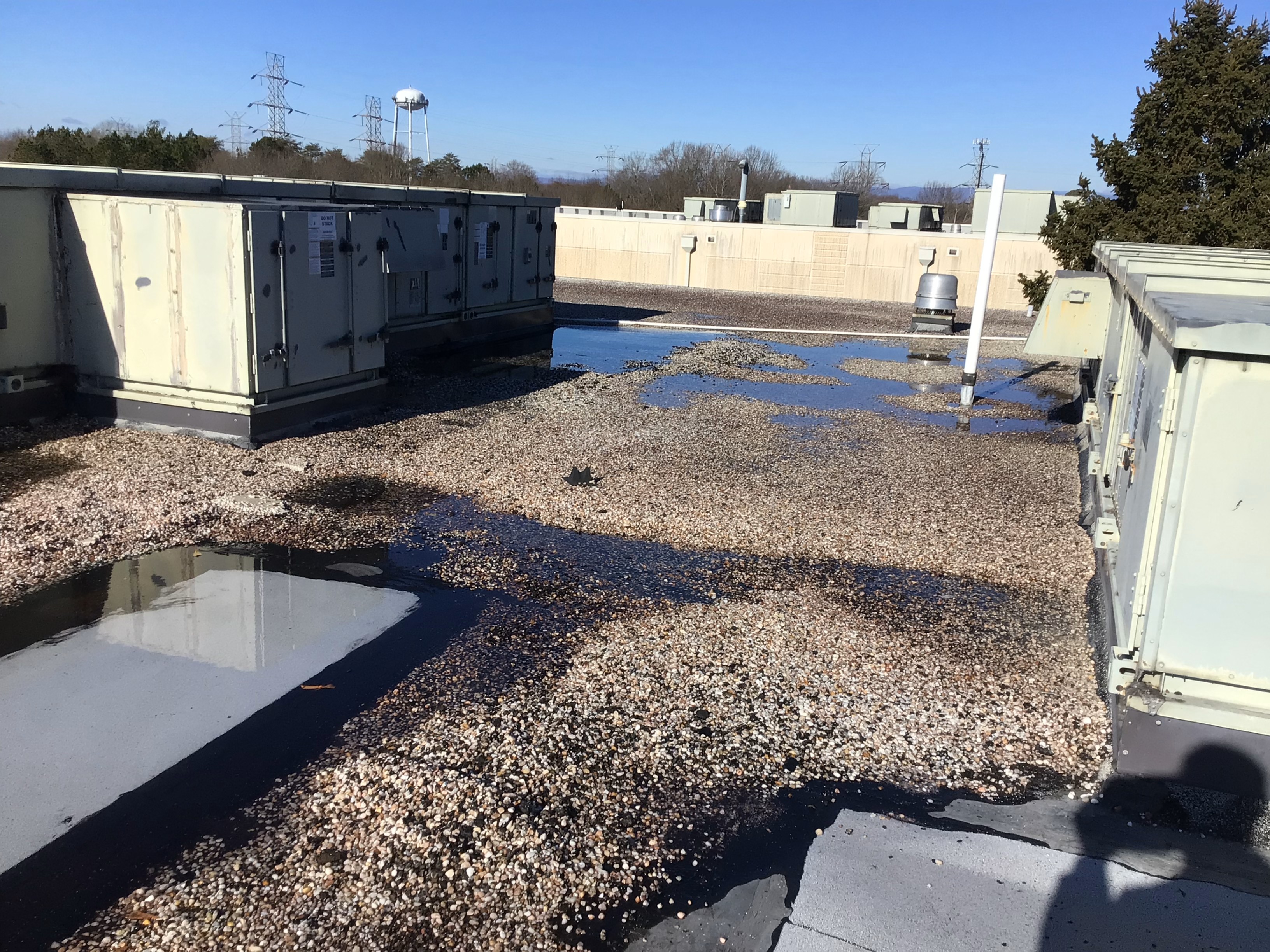 Solution: The new roof system was designed as a single-ply roof system with 4 available bids to allow for the largest pool of potential bidders with the intent of reducing the cost through competition. Bidders could bid 60-mil PVC or TPO with an additive alternate for 80-mil membranes to allow for a longer lasting roof system if it could fit the budget. The roof system was selected based on cost, performance, and speed of installation. All drainage was replaced, and additional drainage was added to allow for a reduction in the cost of the new taper insulation system. Ortho-mosaic drone imagery was used to collect building measurements, including existing roof slopes, to ensure ponding areas were addressed in the new design. The design of the new taper system addressed all ponding areas and eliminated nearly all ponding. Significant deck replacement was included in the base bid for the project to prevent potential change orders.
