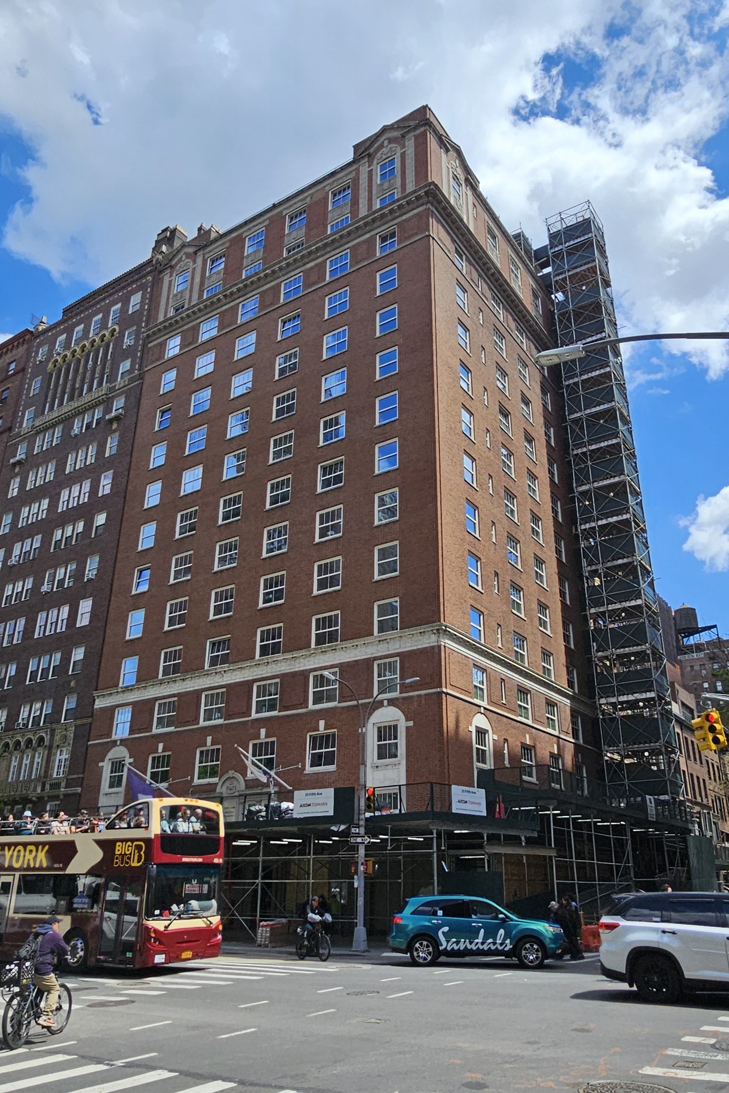 Project Description and Background: New York University’s (NYU) Rubin Hall, located in Manhattan’s Greenwich Village historic district, was originally constructed in 1926 as a luxury high-rise hotel called the Grosvenor. NYU purchased the building in 1964 and converted it to a student residence hall housing more than 600 students and faculty. Its condition up to 2021 was representative of the vast stock of uninsulated, pre-war, mass masonry buildings in the northeast United States. NYU engaged the design team, led by FXCollaborative Architects (FXC), to explore the feasibility of a deep energy retrofit that would respect the building’s historic character while advancing the university’s climate action goals. The vision was ambitious: transforming an uninsulated, fossil fuel-dependent building with no cooling into one that is all-electric, airtight, and energy-efficient, meeting Passive House (EnerPHit) performance criteria. The project’s constraints were significant. Historic district designation required sensitive enclosure detailing and preservation of the building’s character-defining features. Alterations to the facade and window’s exterior appearance were not allowed. NYU also required a tight, one-year construction schedule for the retrofit, to prevent the building from being offline for more than one school season. To achieve this vision, FXCollaborative lead a team of multiple design consultants: Simpson Gumpertz & Heger (SGH) consulted on the enclosure design effort, developing enclosure detailing strategies consistent with EnerPHit compliance requirements, and integrating design solutions that balanced performance, constructability, and historic preservation requirements. Steven Winter Associates (SWA) guided the feasibility study and Passive House (PH) consulting, including modeling and certification submissions. Silman was the Structural Engineer of Record, designing the window attachment strategy. WSP was the MEP Engineer of Record, designing the systems that enabled the full electrification of heating, cooling, ventilation and domestic hot water. Against this backdrop, Rubin Hall became a model project for reconciling historic preservation with aggressive energy and carbon reduction goals.