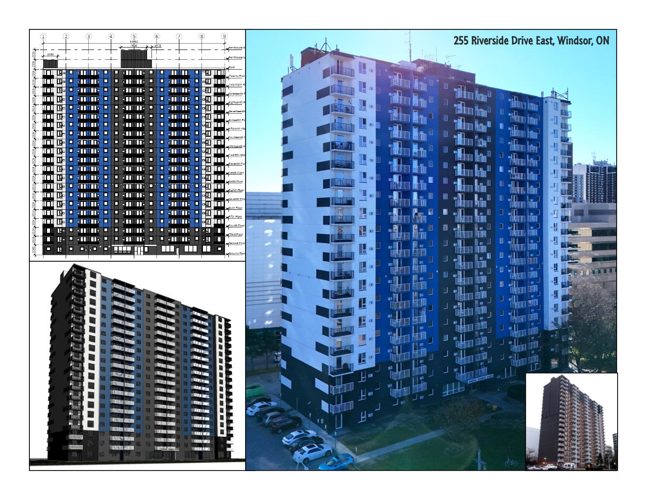 Additional Info: The 255 Riverside Drive East EnerPHit Deep Energy Retrofit was recognized nationally as a Finalist in the EIFS Council of Canada’s (ECC) 2025 Design Awards. The ECC Design Awards celebrate projects that demonstrate creativity, aesthetic versatility, and best-in-class building-envelope performance through the innovative use of EIFS technologies. As a finalist, the project was acknowledged for its striking façade transformation, integration of multiple insulation types, and commitment to sustainability and occupant comfort. The recognition highlights how 255 Riverside exemplifies excellence in EIFS application within a complex occupied retrofit, standing alongside Canada’s most innovative and high-performing building-envelope projects. A copy of the Design Awards Commemorative Book has been included with our supporting documents. This project is also being featured as a case study presentation at the 2025 BES in St. Louis. The session description has been included below and a copy of the report included with our supporting documents: How far can we push the limits of an existing building to achieve significant energy and carbon savings while navigating the constraints of its structure and function? This presentation will delve into the challenges of pursuing a deep energy retrofit for a high-rise residential building, with the goal of achieving EnerPHit certification. We will examine the design decisions, construction challenges, and necessary compromises made throughout the project, highlighting the delicate balance between ambitious energy targets and the practical realities of working with an existing building. By sharing lessons learned, this presentation aims to provide insights for other design professionals facing similar challenges.
