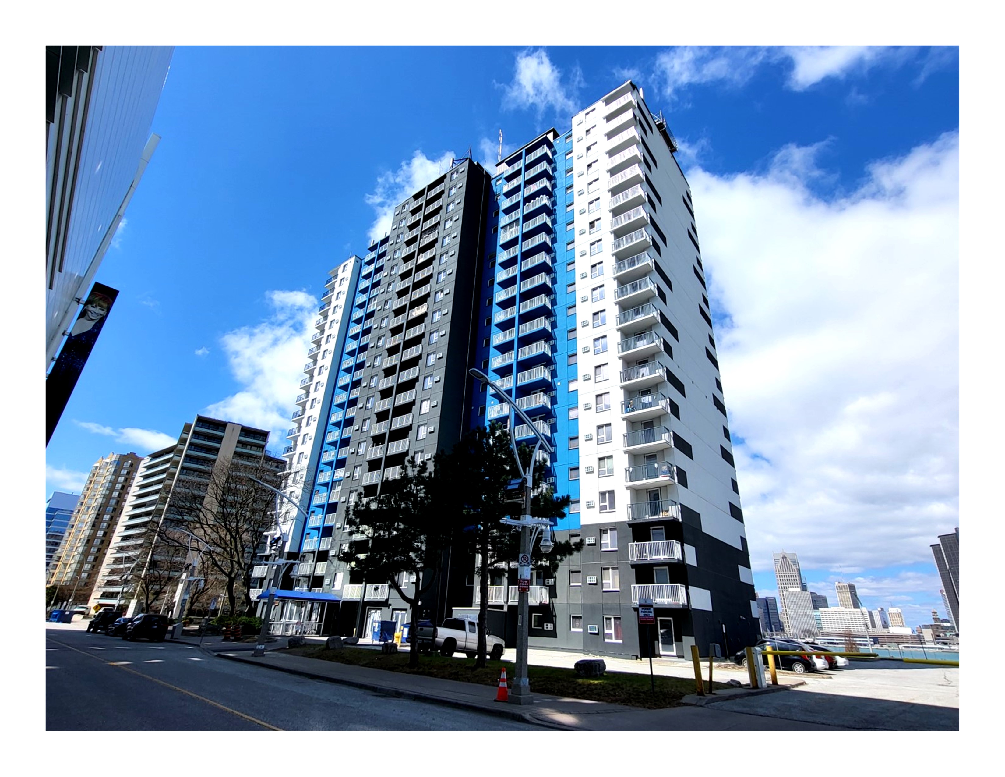 Project Description and Background: In 2018, Raymond Desmarais Manor was a 43-year-old TTW brick building that both looked and performed its age. With significant capital expenditures on the horizon to maintain the building, Hans Kogel (then Chief Development & Regeneration Officer) at the Windsor Essex Community Housing Corporation (WECHC), saw an opportunity to make substantial change to improve the building performance and increase resident comfort. From that point on, this 20-story, 300-unit high-rise non-profit housing building began its transformation guided by the EnerPHit standard. This journey would lead to drastic changes to the interior building systems, and fittingly, a drastic change to the building enclosure – worthy of its iconic location on the Detroit River, next to Caesars Palace in Windsor. Pretium Engineering Inc. (Pretium) was retained as the Prime Consultant, to guide this process from feasibility through construction, bringing building-enclosure expertise and a team of highly skilled subconsultants including Passive House Consultants and Mechanical and Electrical Engineers. As with all existing buildings, the project had considerable constraints. Construction had to proceed while the building remained fully occupied, making resident safety, comfort, and accessibility paramount. This required complex sequencing of work, phased delivery of systems, and continuous communication with tenants and staff to minimize disruption. At the same time, the project targeted the EnerPHit standard, one of the most rigorous benchmarks for existing buildings, demanding airtightness, thermal performance, and detailing far beyond conventional practice. Achieving these requirements in an occupied high-rise environment—where access, staging, and tolerance for disruption were severely limited—was especially challenging. Adding to this, the site’s highly visible location along the Windsor riverfront required a solution that not only delivered measurable performance but also elevated the building’s architectural presence within the community.