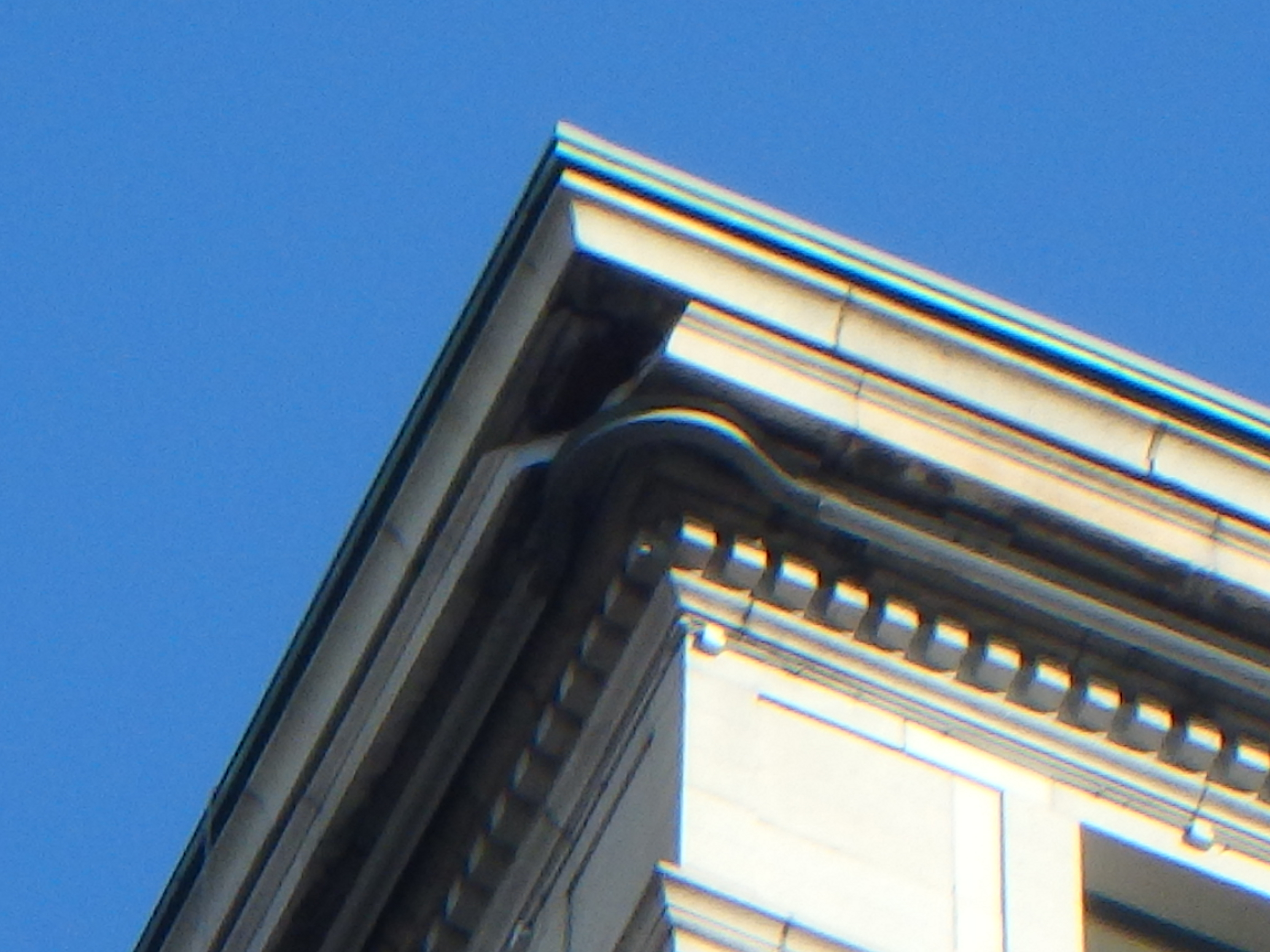 Scope: BECS was retained to investigate the initial stone failure, develop temporary safety measures to secure the remaining stone, determine the cause, and develop the repair. Over the course of the project, the entire stone cornice would be restored and BECS developed the repair details and performed on-site quality assurance while the repairs were in progress. Site visits were made to check on progress and to review if the installed work matched the specs. Load testing of epoxy anchors was performed to determine in-field design strength that were used in the development of the new stone hanger designs. Fall protection and facade access system components were load tested. Various ASTM and AAMA field water testing methodologies were employed in the development of the roof repair details to assist in determining the leak infiltration points for roof gutters and flashings. See attached article for expanded details.