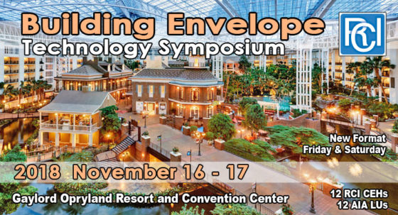 2018 RCI, Inc. Building Envelope Technology Symposium October 5, 2018 About | Register to Attend | Education/Speakers | Sponsors/Exhibitors | Schedule | Hotel Reservations Technical Education for Building Envelope Professionals November 16-17, 2018 (Friday and Saturday) 2018 RCI, Inc. Industry News