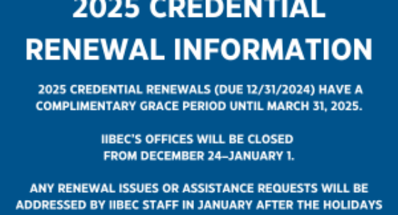 2025 CREDENTIAL RENEWAL INFORMATION December 23, 2024 THANK YOU FOR YOUR PATIENCE AS IIBEC WORKS WITH OUR DATABASE COMPANY TO IMPROVE AND FIX THE ONLINE CREDENTIAL RENEWAL PROCESS. PLEASE USE THE INSTRUCTIONS BELOW TO COMPLETE YOUR CREDENTIAL RENEWAL. 2025 CREDENTIAL… IIBEC Members