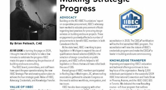 From the CEO: Making Strategic Progress December 9, 2024 From the CEO By Brian Pallasch, CAE Making Strategic Progress ADVOCACY Building on the RCI-IIBEC Foundations’ report on cooperative procurement, IIBEC’s advocacy team worked to educate procurement officials…