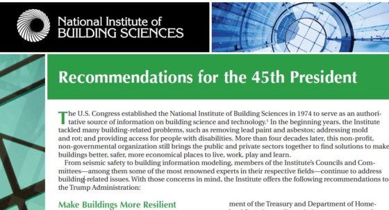 NIBS Issues Recommendations to the 45th President June 27, 2017 Highlights Key Building-Related Concerns Established by the U.S. Congress in 1974, the National Institute of Building Sciences (NIBS) has, from its beginnings, served as an authoritative source of information on building science and… Industry News