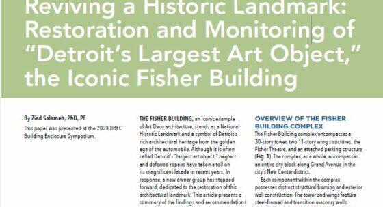 Reviving a Historic Landmark: Restoration and Monitoring of “Detroit’s Largest Art Object,”, the Iconic Fisher Building July 11, 2024 THE FISHER BUILDING, an iconic example of Art Deco architecture, stands as a National Historic Landmark and a symbol of Detroit’s rich architectural heritage from the golden age of the automobile. Technical Article