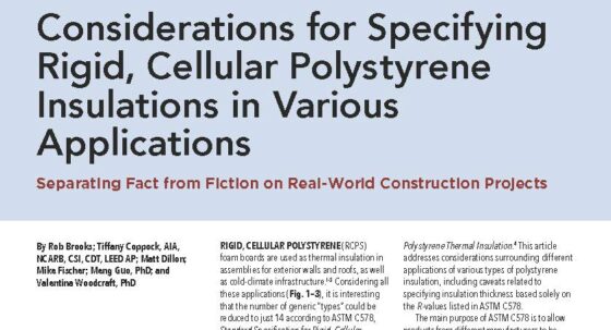 Considerations for Specifying Rigid, Cellular Polystyrene Insulations in Various Applications February 9, 2024 RIGID, CELLULAR POLYSTYRENE (RCPS) foam boards are used as thermal insulation in assemblies for exterior walls and roofs, as well as cold-climate infrastructure.1-3 Considering all these applications (Fig. 1–3), it is… Technical Article