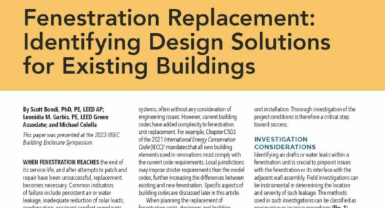 Fenestration Replacement: Identifying Design Solutions for Existing Buildings February 9, 2024 systems, often without any consideration of engineering issues. However, current building codes have added complexity to fenestration unit replacement. For example, Chapter C503 of the 2021 International Energy Conservation Code… Codes and Standards