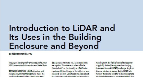 Introduction to LiDAR and Its Uses in the Building Enclosure and Beyond September 29, 2023 14 • IIBEC Interface October 2023 Feature Introduction to LiDAR and Its Uses in the Building Enclosure and Beyond By Robert Hendricks, PhD This paper was originally presented at… Technical Article