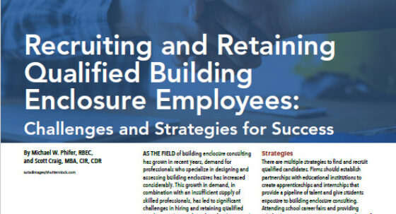 Recruiting and Retaining Qualified Building Enclosure Employees September 29, 2023 10 • IIBEC Interface October 2023 Feature Recruiting and Retaining Qualified Building Enclosure Employees: Challenges and Strategies for Success By Michael W. Phifer, RBEC, and Scott Craig, MBA,… Technical Article