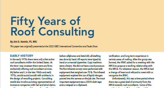 Fifty Years of Roof Consulting June 29, 2023 26 • IIBEC Interface July 2023 Fifty Years of Roof Consulting Feature By Jim D. Koontz, PE, RRC This paper was originally presented at the 2023 IIBEC International Convention and… Technical Article