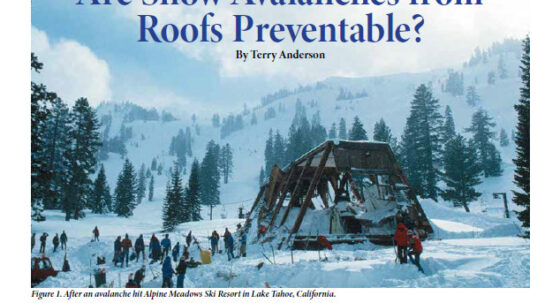 Are Snow Avalanches from Roofs Preventable? April 21, 2023 Forty years ago, an unprecedented avalanche occurred at Alpine Meadows Ski Resort in Lake Tahoe, California, and caused the deaths of seven people. I recently watched the 2021 documentary film Buried,1 which is a recounting… General Interest