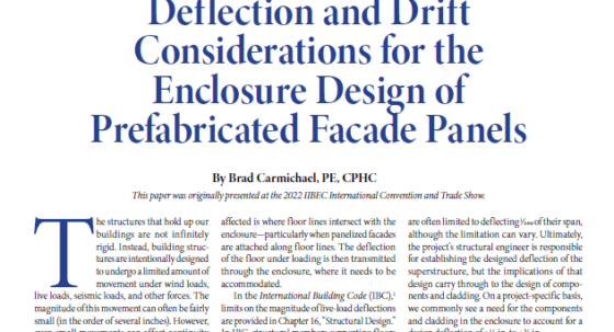 Deflection and Drift Considerations for the Enclosure Design of Prefabricated Facade Panels April 21, 2023 The structures that hold up our buildings are not infinitely rigid. Instead, building structures are intentionally designed to undergo a limited amount of movement under wind loads, live loads, seismic loads, and other forces. The… Interface