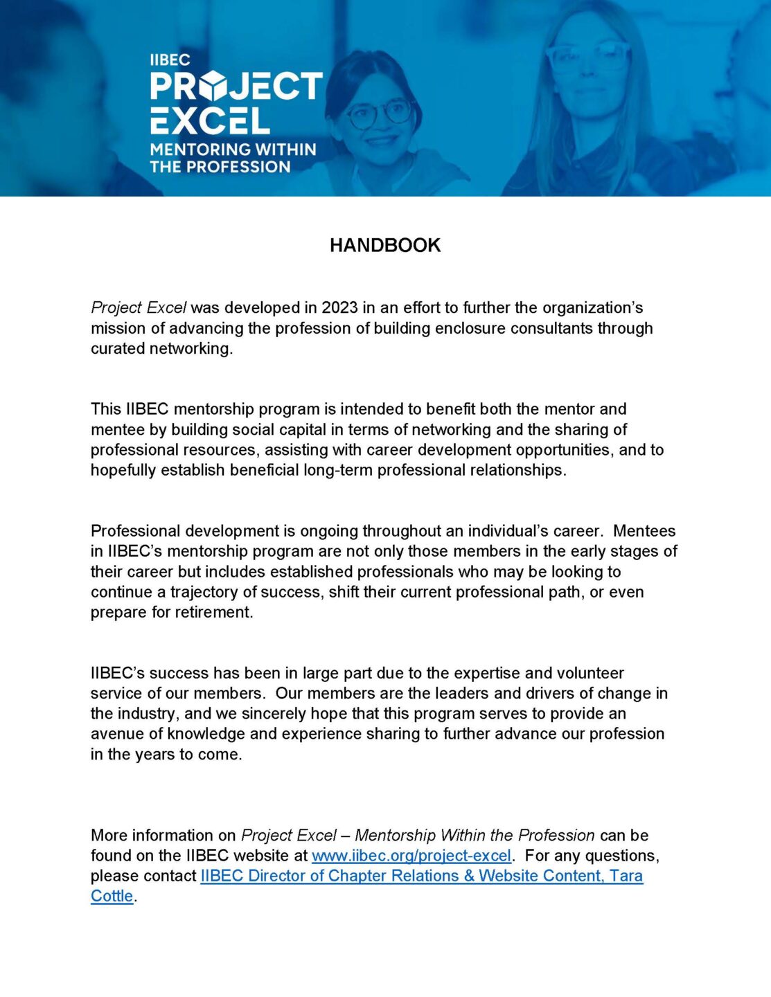 Project Excel is a professional mentorship program intended to benefit both mentors and mentees at any stage in their career by building social capital in terms of networking, the sharing of professional resources, assisting with career development opportunities, and to establish beneficial long-term professional relationships within the building enclosure profession.