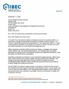 IIBEC has asked that the bill explicitly exclude construction design services, ensuring that qualifications-based selection principles are preserved. These safeguards protect both the public interest and the quality of critical building projects.